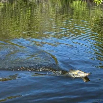 A lot of my trips have ventured further south, toward the Cocoa Beach and Melbourne area. Here, we have been concentrating on snook and tarpon. The tarpon have been my favorite target and they have been providing plenty of action. These aren't the giant tarpon, but they are the ones I really enjoy chasing; ranging from 5 pounds to about 30 pounds. These tarpon provide a lot of jumping fun, without wearing you out. Light spinning rods and 7-8 weight fly rods are perfect for chasing these fish. The snook in this area have been a bit bigger, with several fish in the 30 inch and over range being located. No, we haven't landed one in that size yet, but we've had them eat and give us the "zing-pow" when they take off. Snook this size are a challenge, as they are very powerful and intelligent. They know where every mangrove root, dock piling, oyster bed, or other object in the water is. They head for it and you either stop them or they break you off. This is not finesse fishing, it is an all out battle to determine who wants it more.